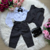 Conjunto composto por: Camisa social na cor Branca manga longa, gravata borboleta preta, calça na cor preta , colete de alfaiataria preto e cinto. Demais peças ou acessórios, não inclusos. Calçados Vendindos SeparadamenteNOIVINHOPAGEMBATIZADO    * LEMBRANDO QUE PODERA HAVER VARIAÇÃO DE TONALIDADE DO PRODUTO DEPENDENDO DA TELA DO SEU DISPOSITIVO