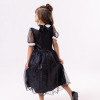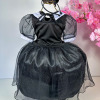 Fantasia Infantil Vandinha – Wandinha Apresentamos a Fantasia Infantil Wandinha, um modelo inspirado no estilo marcante da personagem mais querida da Família Addams. Esse vestido longo traz a essência gótica em uma versão delicada e sofisticada para as pequenas fashionistas. Detalhes do Produto Vestido preto com saia longa em tule leve e brilho sutil; Parte superior com gola branca clássica e botões frontais, remetendo ao estilo original da Vandinha; Mangas em tule transparente com acabamento moderno; Modelagem confortável que garante liberdade de movimentos.Informações Importante As medidas podem variar em até 2cm. Recomendamos sempre consultar a tabela de medidas antes da compra para evitar erros. Cuidado ao vestir: não forçar a entrada ou puxar o tecido, pois pode esgarçar a costura ➝ Não realizaremos troca por mau uso. Tiara e outros acessórios não acompanham o produto, mas estão disponíveis em nosso site. Calçado vendido separadamente, disponível na categoria Calçados. As cores do produto podem sofrer variações de tonalidade conforme a configuração da tela do seu dispositivo.