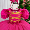 Confeccionado em tecido misto possui forro em poliéster e algodão para não incomodar a criança e proporcionando um caimento incrível e sofisticado, possui gola redonda, comprimento médio, mangas curtas, possui elástico nas costas para melhor ajuste, e acabamento com lindo laço na parte posterior do vestido completa o look dos sonhos!   * Medidas podem variar em até 4cm * Caso queira o vestido mais armado, recomendamos o uso do saiote ou anágua de armação, disponível no nosso site na categoria acessórios. * Tiara vendida separadamente, disponível em nosso site na categoria acessórios. * Calçados vendido separadamente, disponível em nosso site na categoria calçados. * LEMBRANDO QUE PODERA HAVER VARIAÇÃO DE TONALIDADE DO PRODUTO DEPENDENDO DA TELA DO SEU DISPOSITIVO