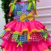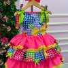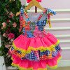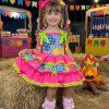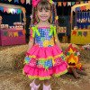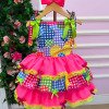 Vestido Junino Banana Club Luxo Encanto da Roça Rosa Neon