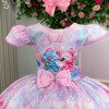 Um verdadeiro encanto para momentos especiais!Esse vestido temático combina delicadeza, conforto e um toque de magia com a estampa dos personagens Stitch e Angel — perfeito para aniversários, ensaios fotográficos, festas temáticas ou para as pequenas que amam se sentir princesas. Detalhes do produto:Confeccionado em tafetá leve e macio com composição mista: Forro interno: 100% poliéster/ Tecido externo: 100% poliamida/ Tecido externo: 100% poliamida/ Tule decorativo: 100% algodão Forrado para garantir o conforto da criança durante o uso Mangas com acabamento delicado em rendinha Elástico nas costas para melhor ajuste ao corpo Gola redonda com decote “V” suave nas costas laço rosa grande nas costas Comprimento médio com excelente caimento Atenção: As medidas podem variar em até 2cm. Recomendamos sempre consultar a tabela de medidas antes da compra para evitar erros. Para um volume extra, indicamos o uso de saiote de armação, vendido separadamente na categoria acessórios. Tiara e outros acessórios não acompanham o produto, mas estão disponíveis em nosso site. Calçado vendido separadamente, disponível na seção de calçados.As cores do produto podem sofrer variações de tonalidade conforme a configuração da tela do seu dispositivo.