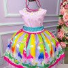 TECIDO MICROFIBRA 100% Confeccionado em tecido misto possui forro em poliéster e algodão para não incomodar a criança e proporcionando um caimento incrível e sofisticado, possui gola redonda, comprimento médio, mangas curtas, apliques de laço e perolás, contém, também, elástico nas costas para melhor ajuste. ROSINHA, ROSA, FLORZINHA, FLOR, COLORIDO, ARCO ÍRIS, * Medidas podem variar em até 4cm. * Caso queira o vestido mais armado, recomendamos o uso do saiote ou anágua de armação, disponível no nosso site na categoria acessórios. * Tiara vendida separadamente, disponível em nosso site na categoria acessórios. * Calçados vendido separadamente, disponível em nosso site na categoria calçados. * LEMBRANDO QUE PODERA HAVER VARIAÇÃO DE TONALIDADE DO PRODUTO DEPENDENDO DA TELA DO SEU DISPOSITIVO