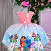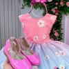 TECIDO 100% POLIÉSTER Confeccionado em tecido misto possui forro em poliéster e algodão para não incomodar a criança e proporcionando um caimento incrível e sofisticado, possui gola redonda, comprimento médio, mangas curtas, contém, também, elástico nas costas para melhor ajuste, acabamento com lindo laço na parte posterior do vestido completa o look dos sonhos! * Medidas podem variar em até 4cm. * Caso queira o vestido mais armado, recomendamos o uso do saiote ou anágua de armação, disponível no nosso site na categoria acessórios. * Tiara vendida separadamente, disponível em nosso site na categoria acessórios. * Calçados vendido separadamente, disponível em nosso site na categoria calçados. * LEMBRANDO QUE PODERA HAVER VARIAÇÃO DE TONALIDADE DO PRODUTO DEPENDENDO DA TELA DO SEU DISPOSITIVO